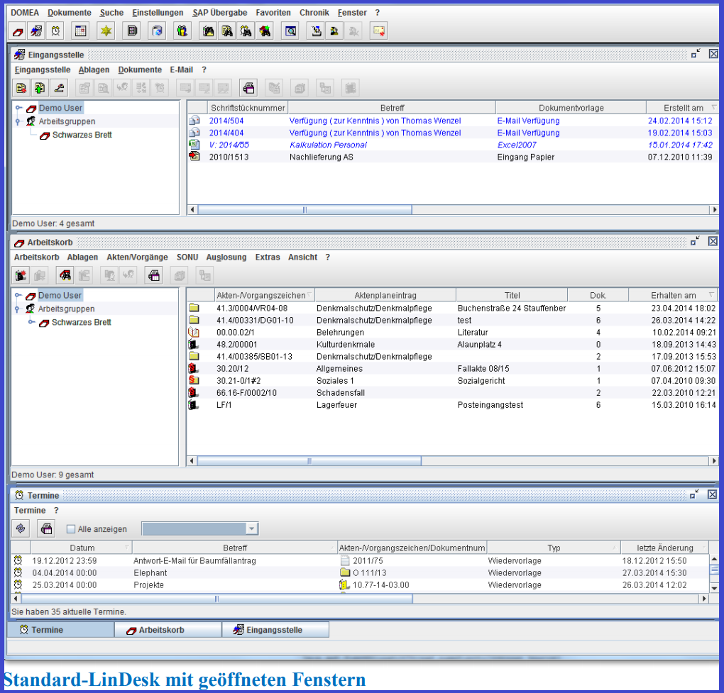 Dresden, 01. März 2012. In unserer Produktübersicht stehen bei unseren Eigenentwicklungen ab sofort Screenshots des LinDesk 4.5 für DOMEA® mit aktuellen Funktionen bereit.