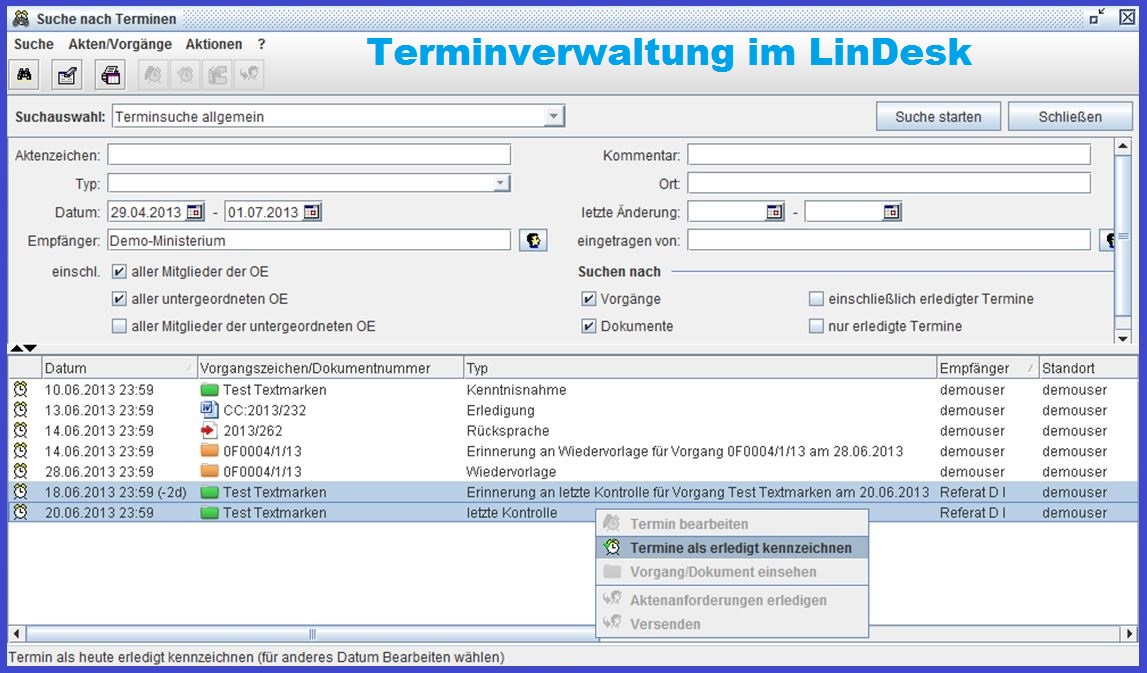 Dresden, 01. März 2012. In unserer Produktübersicht stehen bei unseren Eigenentwicklungen ab sofort Screenshots des LinDesk 4.5 für DOMEA® mit aktuellen Funktionen bereit.