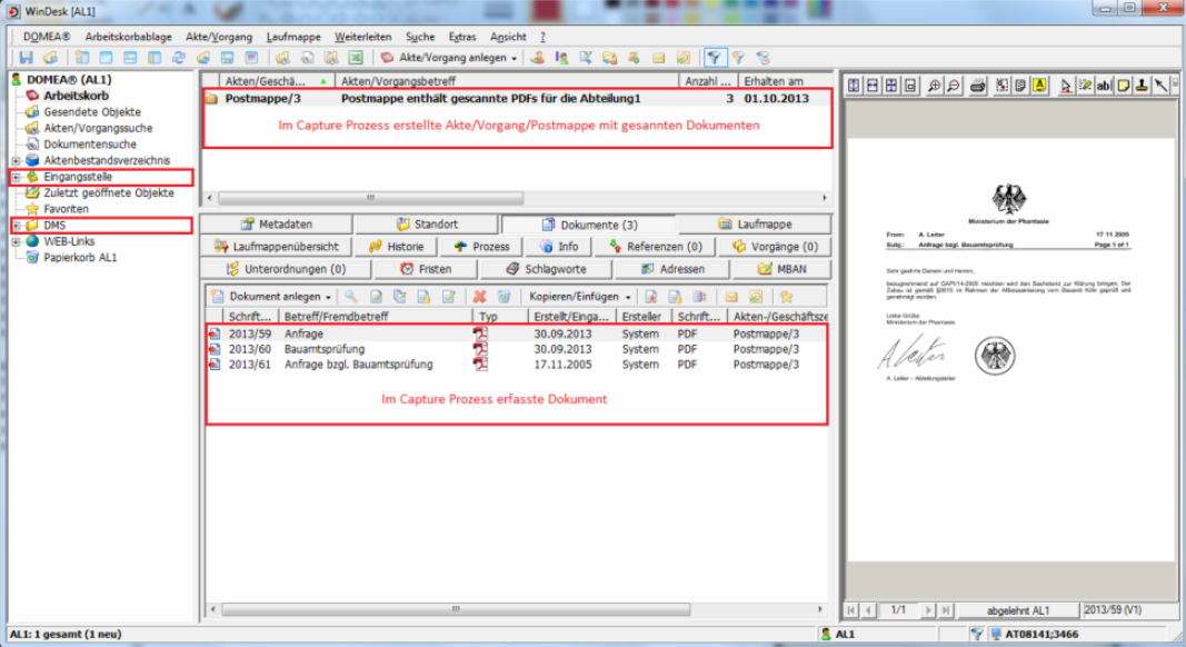 Eine direkte Ablage der Ergebnisse in DOMEA® wird unterstützt.